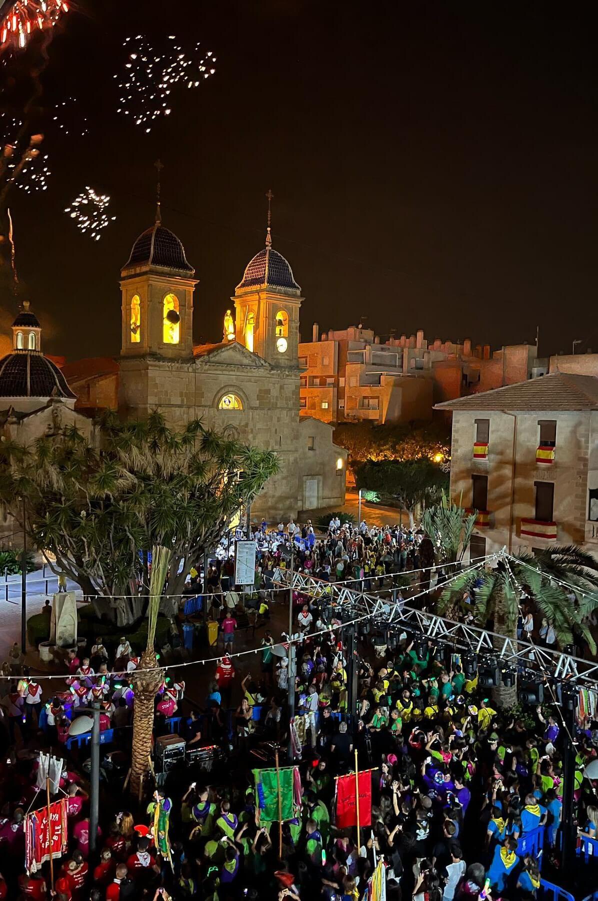 Después de la cena de hermandad en las peñas, una marea de colores inunda la rambla en la entrada de peñas en la que todos los peñistas ataviados con sus camisetas de color y sus pañuelos identificativos acompañados de música finalizan su recorrido en la plaza del ayuntamiento para tras la alborada en la parroquia y el canto de los himnos estallar de alegría con el tradicional “Santjoners, santjoaneres ja estem en festes” que las Reinas y Damas proclaman desde el balcón del ayuntamiento y que es el pistoletazo de salida de nuestras fiestas.